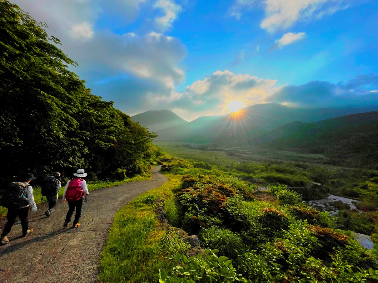 彗星の写真もいいですが、今年から復活した登山の写真。朝日の中で出発の風景です。