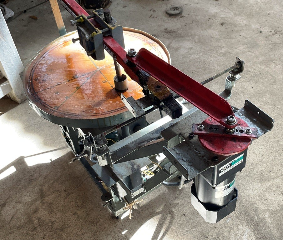 昔,私も30cm級が磨ける様にと,壊れた洗濯機とスチールラックで作って使ってたことがあります.ターンテーブルとツールを動かす部分とを別体式にしてました.倉庫に,それぞれを適当に置いて2.5mのロッドで繋いでシーコ,シーコと動かしていました.