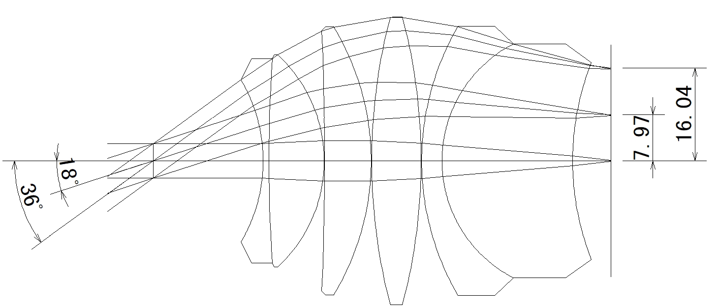 1枚目の図をDXF形式で出力させCADでインポートし、入射角に対する絞り環位置の光線高さxを測定しました。