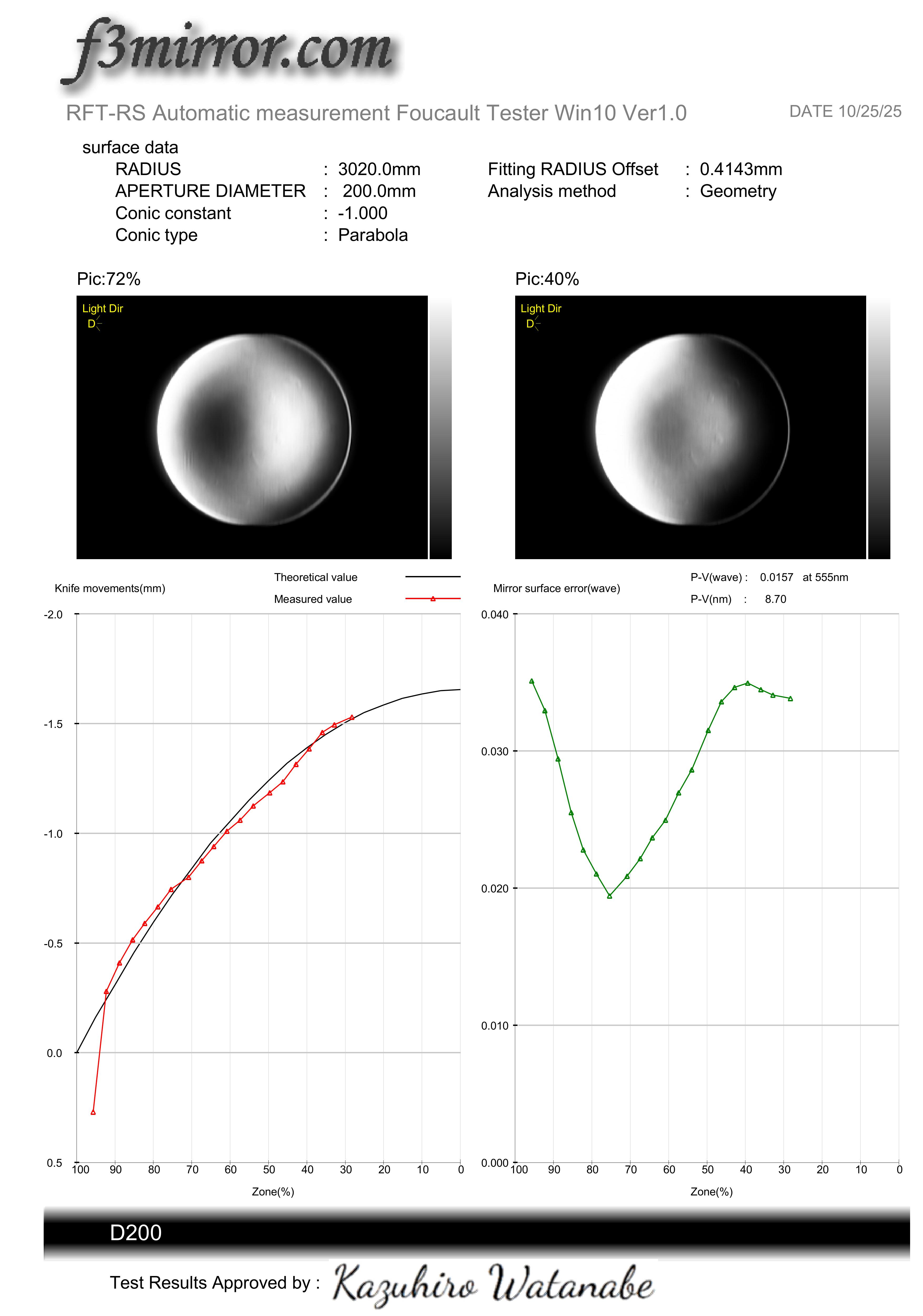 自作じゃありませんが、f3mirrorさんに再メッキと測定をしてもらいました。
