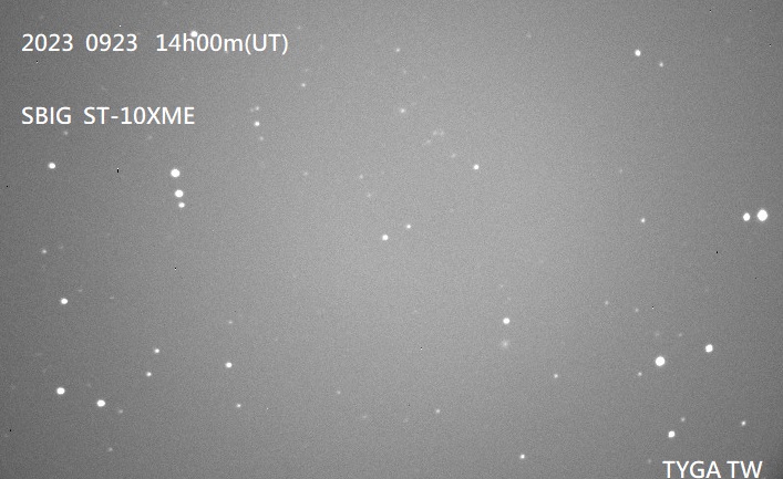 小惑星台湾の約20分間の動き: ΔRA=-1.2s/20min ΔDec= +09.07s/20min (測量 2023 0709)