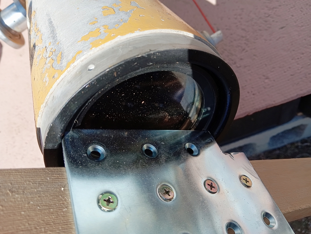 うちのは対物レンズのクリーニングが出来ましたが,接眼部の分解が出来ずに中休みしてます.ニコンの双眼鏡なんかは,対物セルみたいな大きいネジは,横から止めネジを貫通させておく設計が多いのですけど,これもそれが入ってて,エラく硬いのです.CRCを染みこませて,かつ専用のカニメを作らないとならなくて・・・・,まぁ,接眼部内側とプリズムは窒素ガス封入してたのか?,大変綺麗なのです.まぁ,開けられなければ,ここで締めてマウントを作り始めることにします.