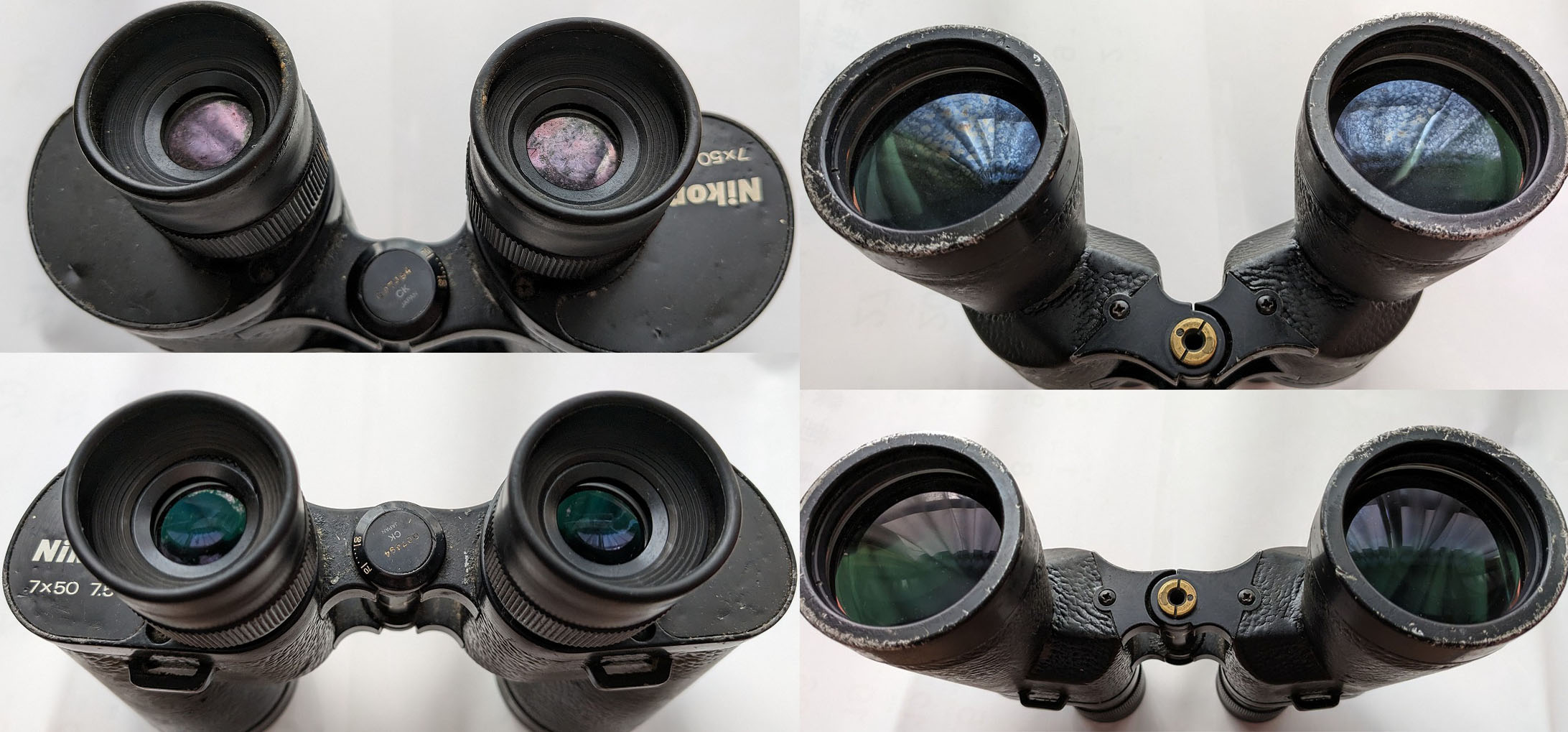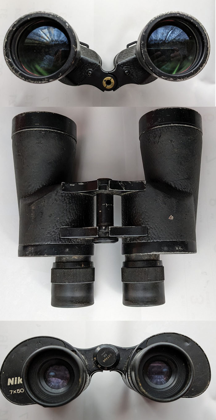 一昨日、メルカリで外観ボロボロのニコン7x50mmが2台で11,000円で出ていました。