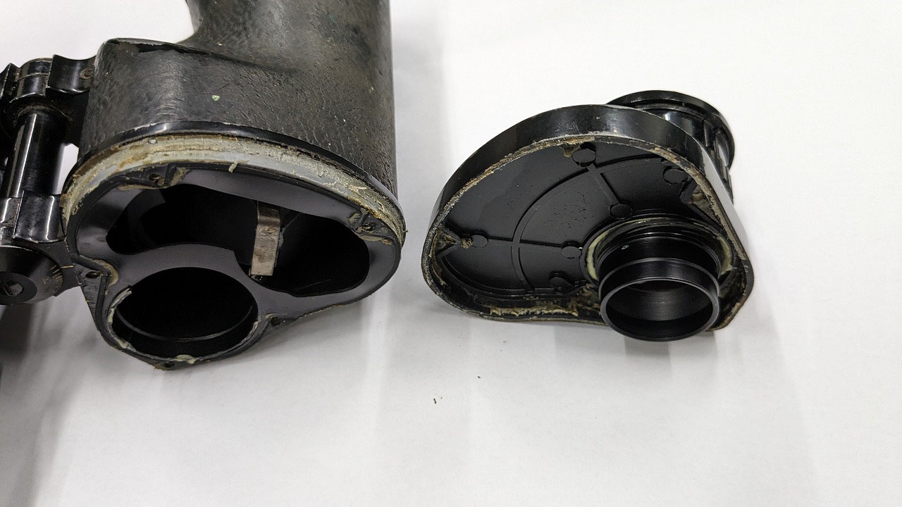ポロプリズム2個を組み合わせて固定してあるプレートを筐体に取り付けるねじ3本がゆるゆるに緩んでいました。