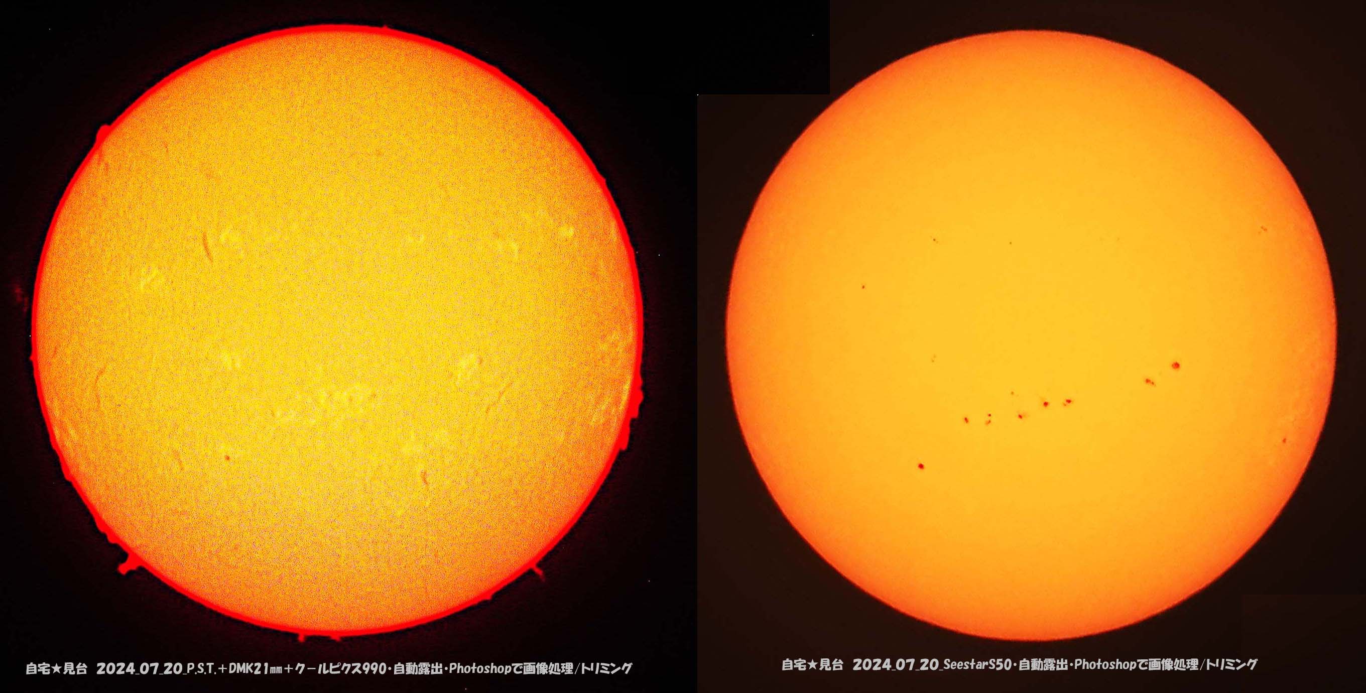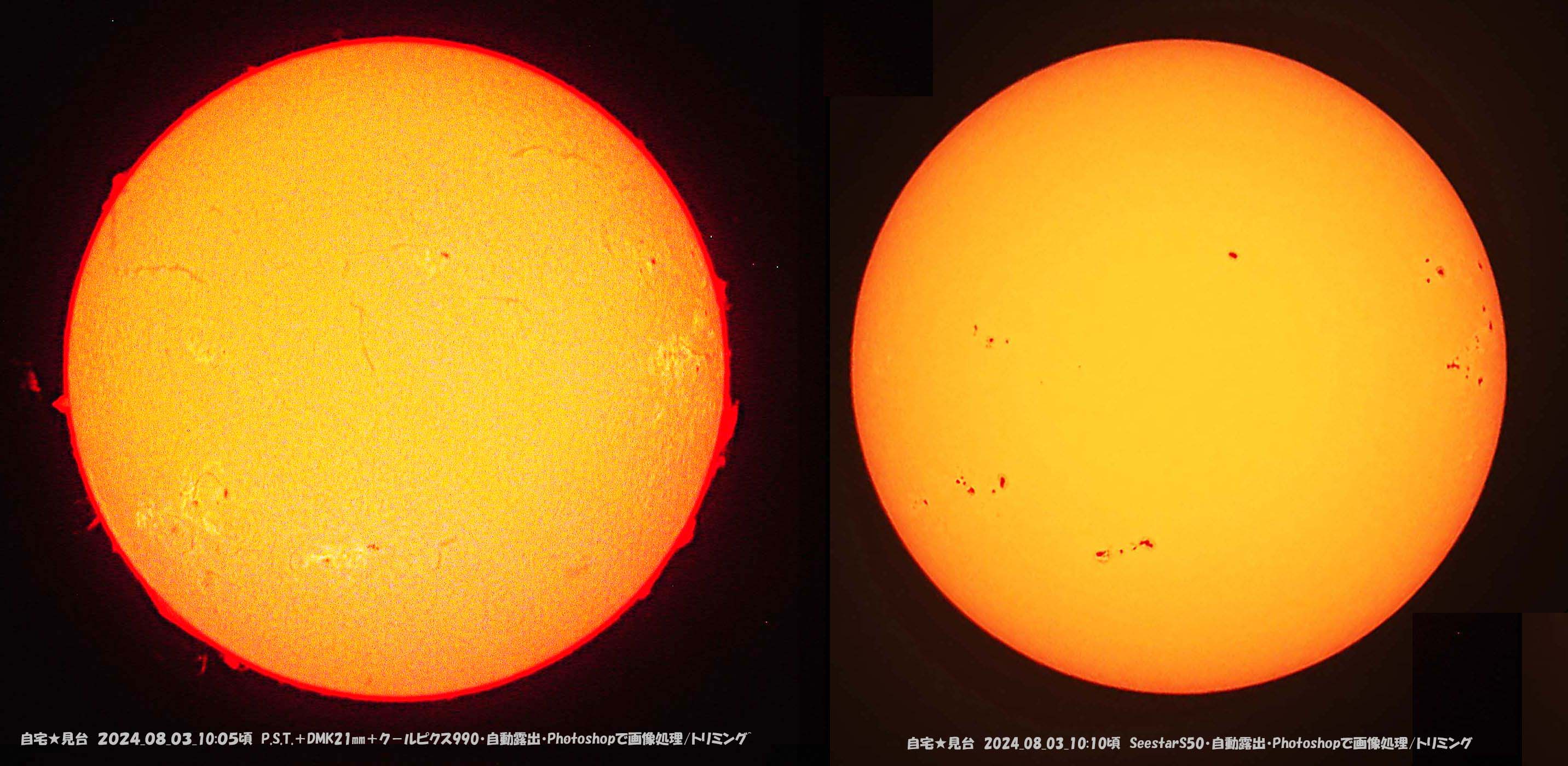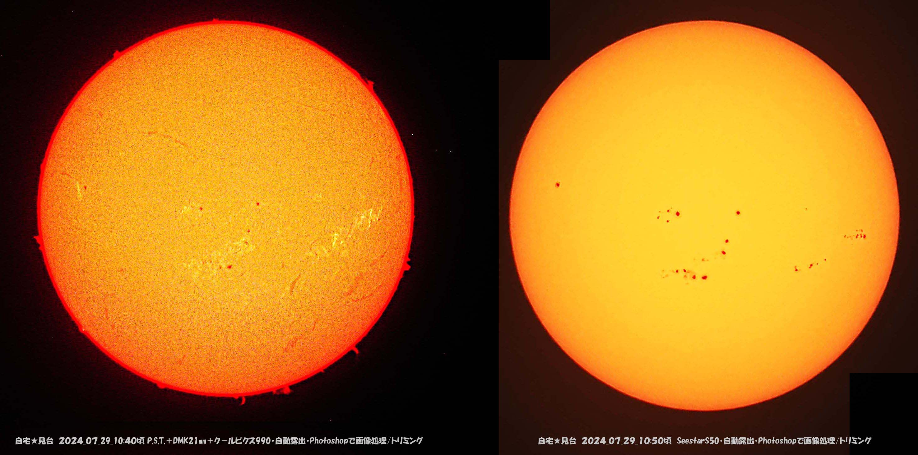 太陽は黒点が増えて、並んでいて見応えあります。