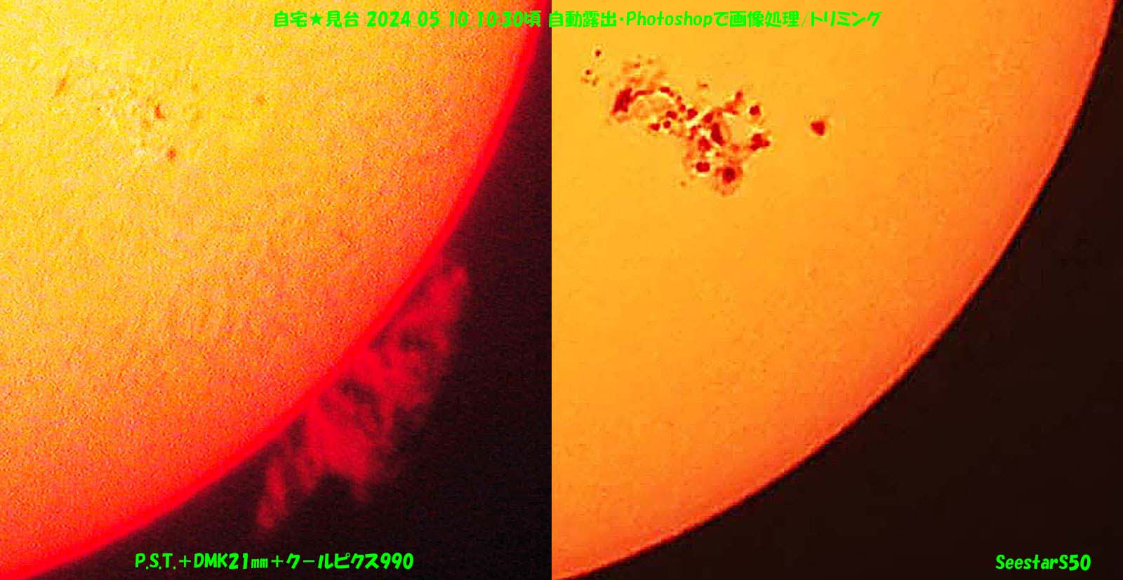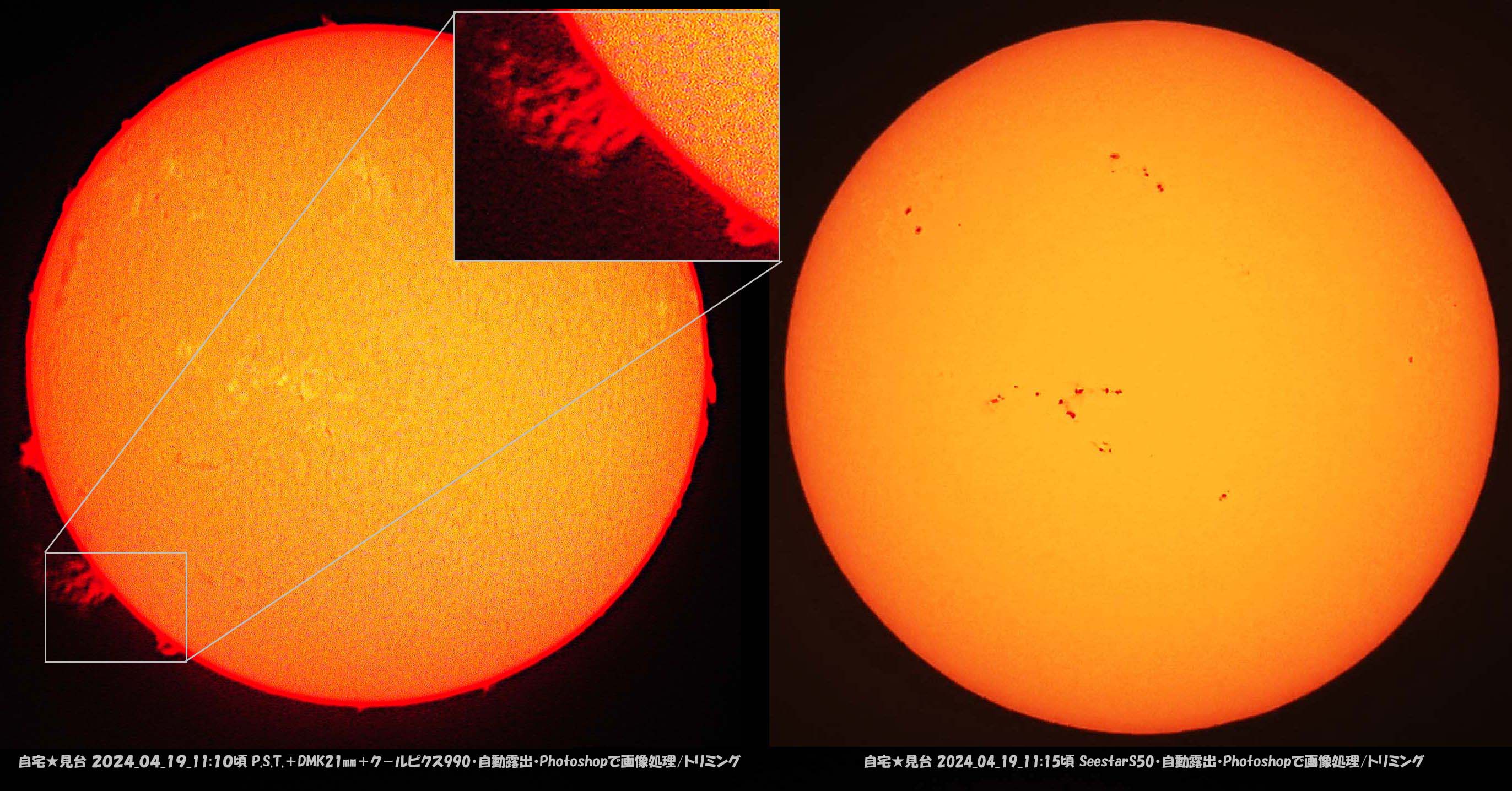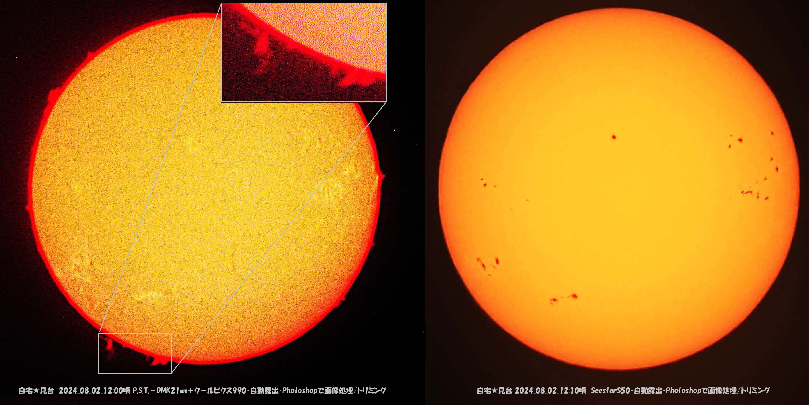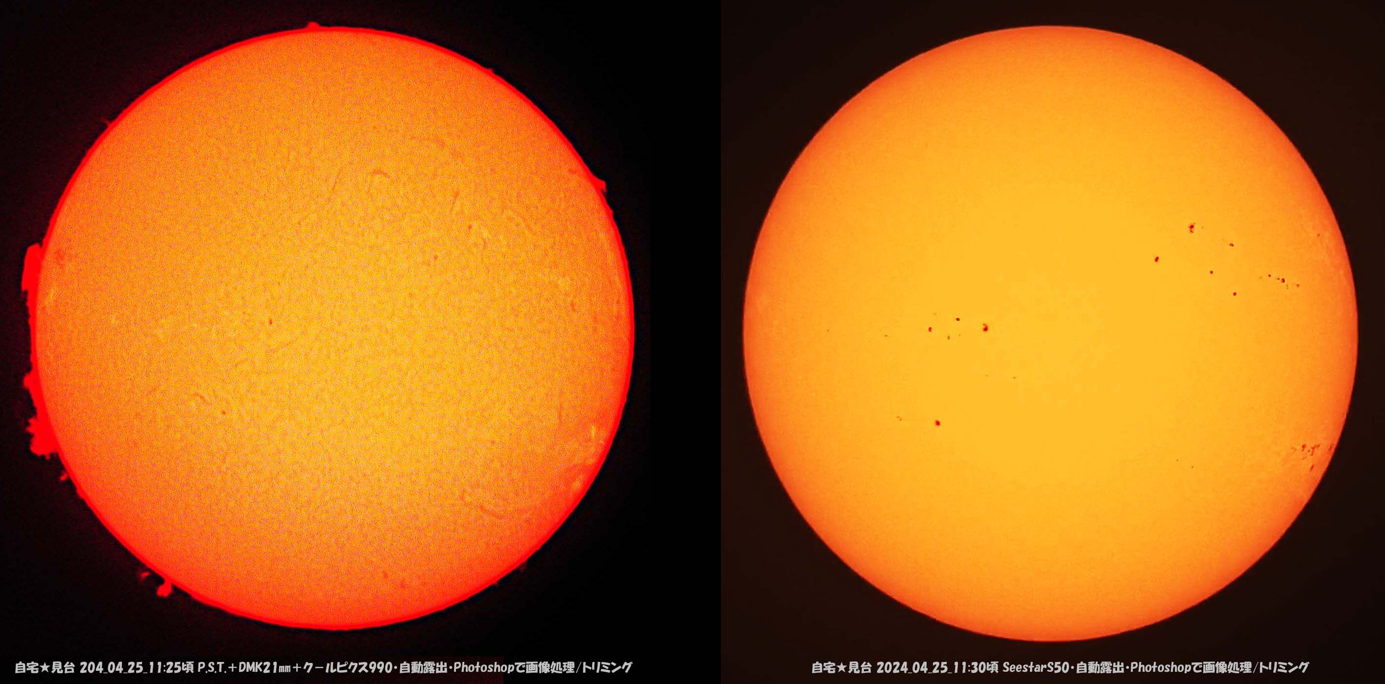 太陽は黒点が増えて、並んでいて見応えあります。
