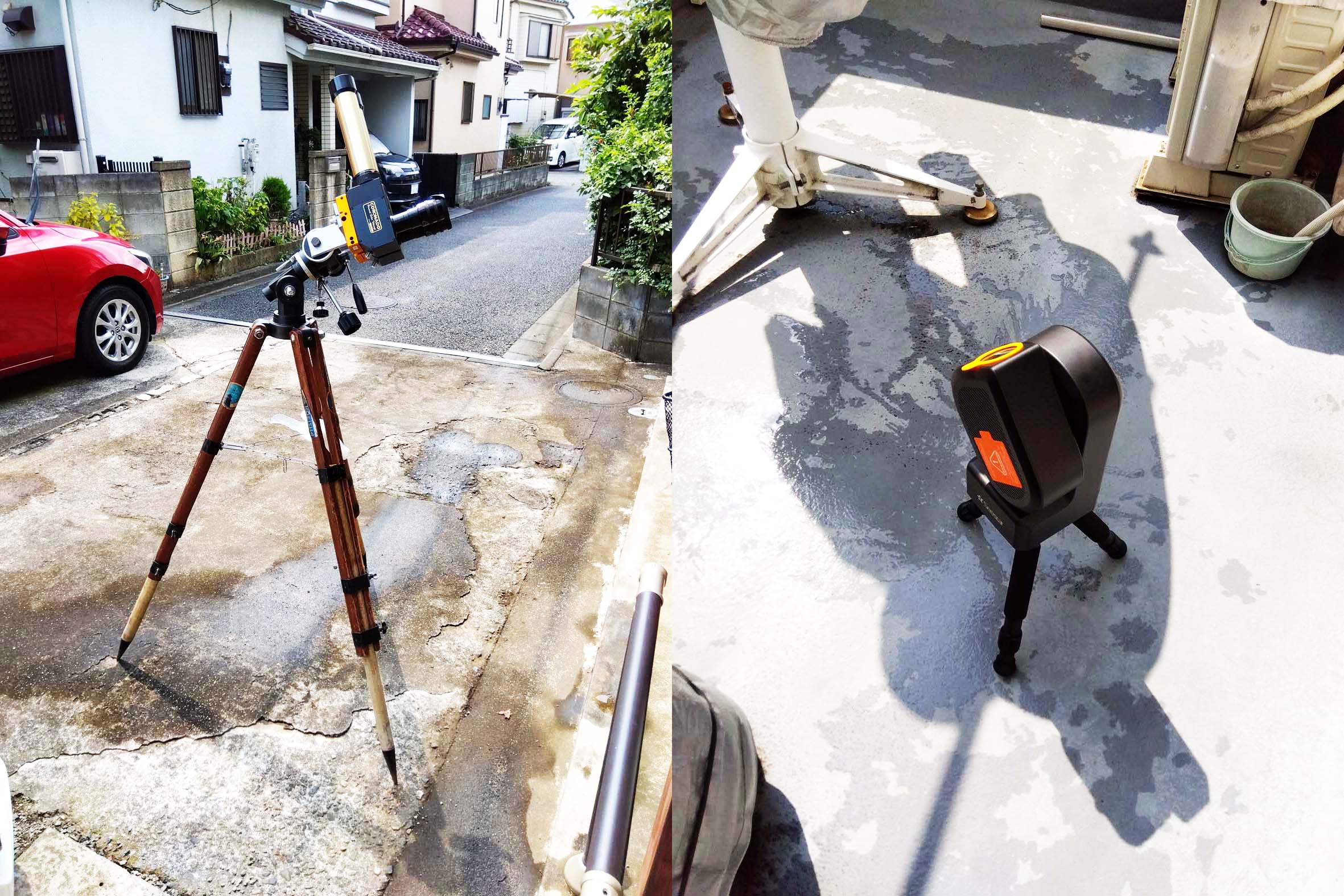 なり、準備のやりがいがありません。(_ _;画は打ち水後の観測機材ですが直ぐに乾く!