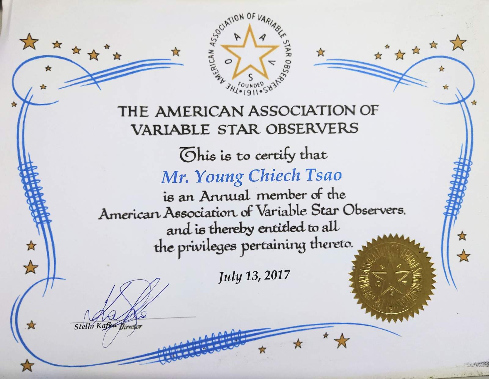 ゆっくりと引退生活を送っていた2010年になって、台長の言葉を思い出し、SBIG ST-237CCDを購入し、デジタルからCCDセンシングのリニア測定、儀器星等計算までデジタル観測を学び始めました。正式に変光星の光電測光を始める前に、中古のSBIG ST-2000XM CCDを5万台湾ドル(新台幣)で購入する予定でしたが、台長の指示に従ってアメリカ変光星協会に入会したのは40年後でした。 、変光星の観測を再開して、遅ればせながらの天体観測ライフを満喫していきます。
