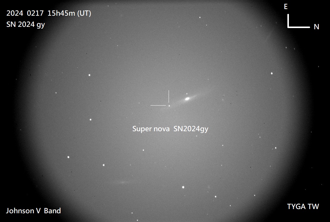 1 SN 2024gy 2024 2月 17.657日 星等:13.9 mag (Johnson V band)