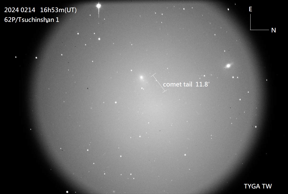 2024年2月15日 12時53分 赤経 = 12時41分00秒 赤経 = +09d59'31" おとめ座 彗星の核m1は9.5等。部分拡大 彗星の尾は約11.8'