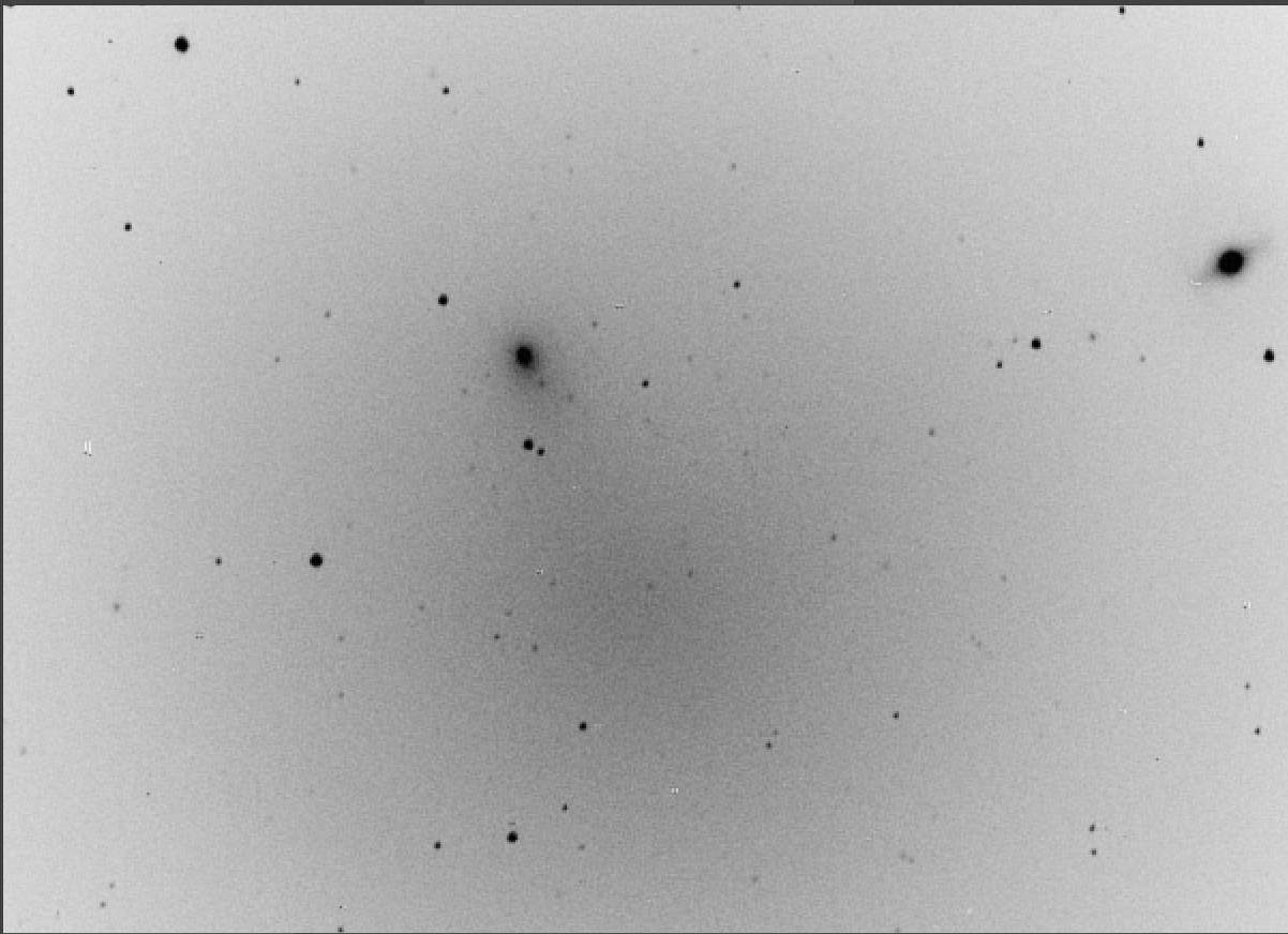 2024年2月18日 12時53分 赤経 = 12時40分56秒 赤経 = +10d02'59" おとめ座 彗星核m1は10.0等。元画像では彗星核の明るさが暗くなっています。