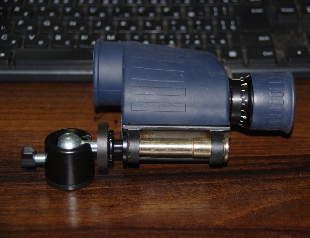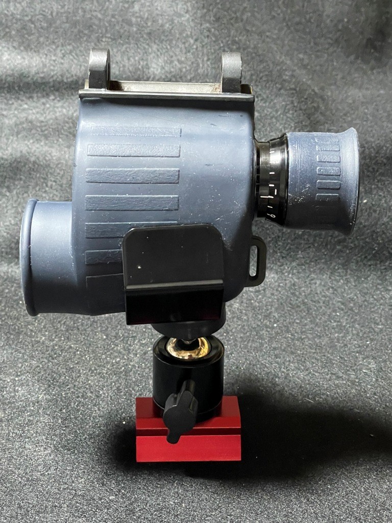ちなみに、自由雲台はファインダーのアリ型/アリ溝にあう金具に固定を前提にしております。それは探したらあるものと思います。