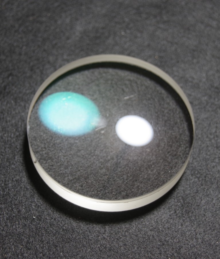 ただ、ここで疑問なのが第1面(と思われる)のほうの反射が、白色なのです。単層コートでも少し色がついて見えるのですが、無コート+第4面コートなのでしょうか?片方するのなら、第1面のほうと思うのですが、いかがでしょう?