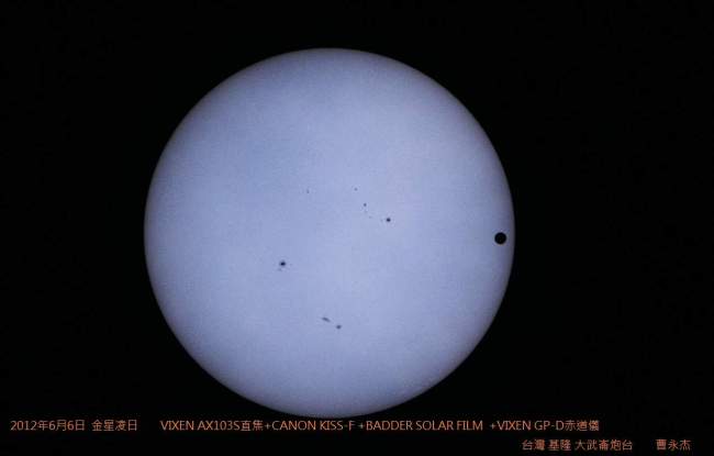 同年 2012年6月6日. 金星凌日( 金星の通過)