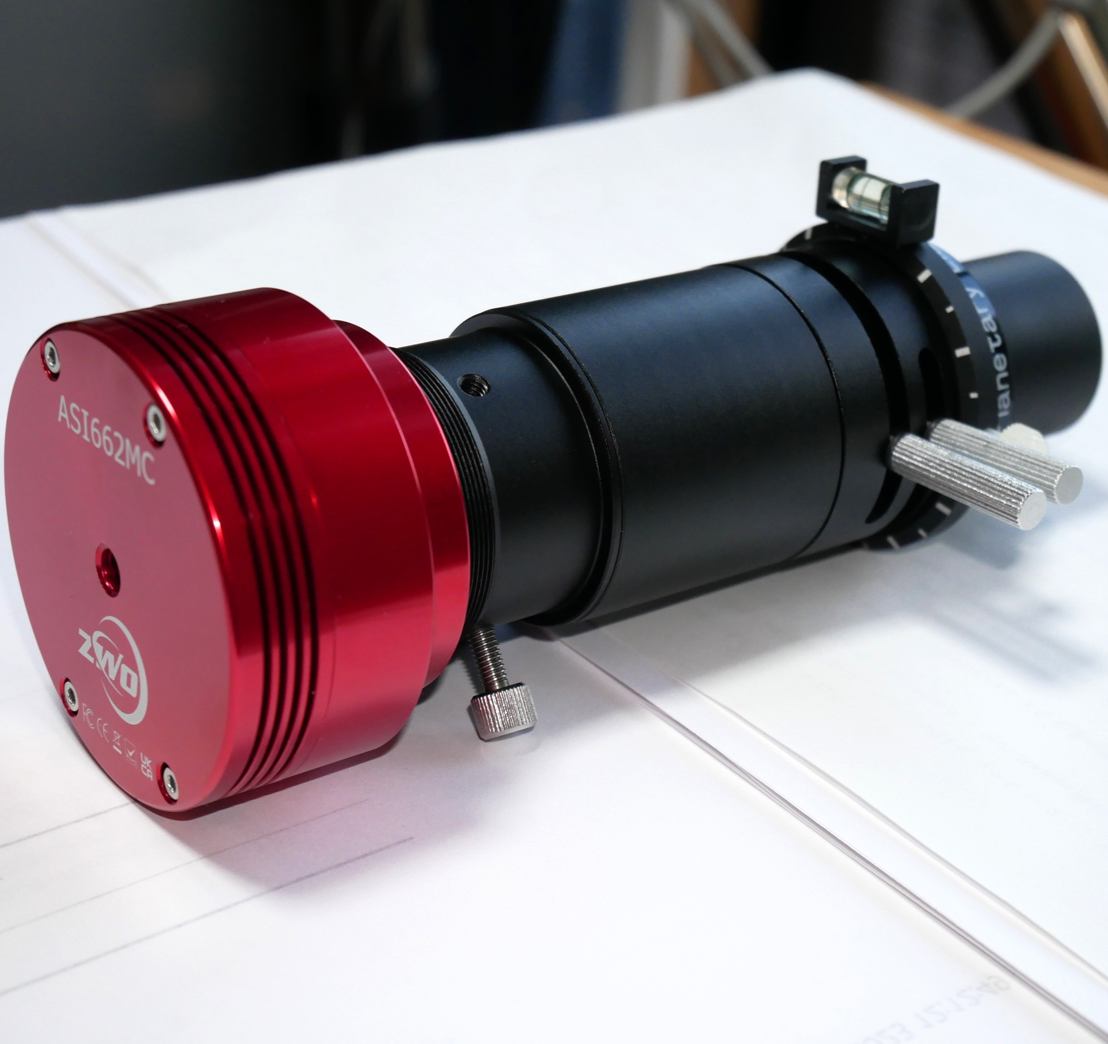 ZWO ADCとCMOSカメラの間にL40mmのT2ネジ延長筒を挿入することで拡大率2.5倍となります。