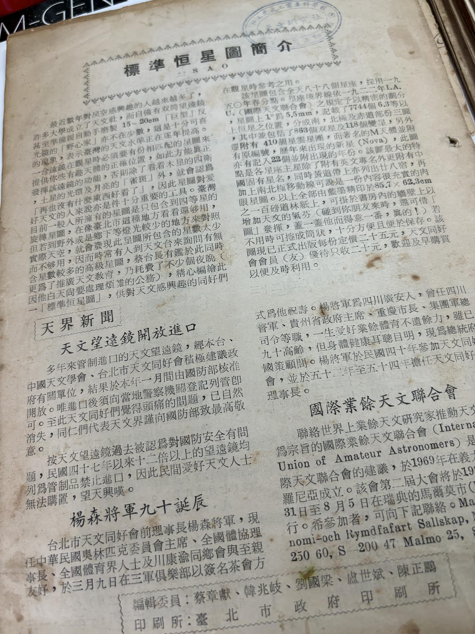 1968 年、台湾のアマチュア天文学者、劉国梁氏は、米国海軍天文台と英国のグリニッジ天文台が共同で開催した国際アマチュア月食観測プロジェクトに招待され、数少ない台湾のアマチュア天文学者の 1 人となりました。当時戒厳令下に置かれていた人々は国際天体観測活動に参加できなかった。