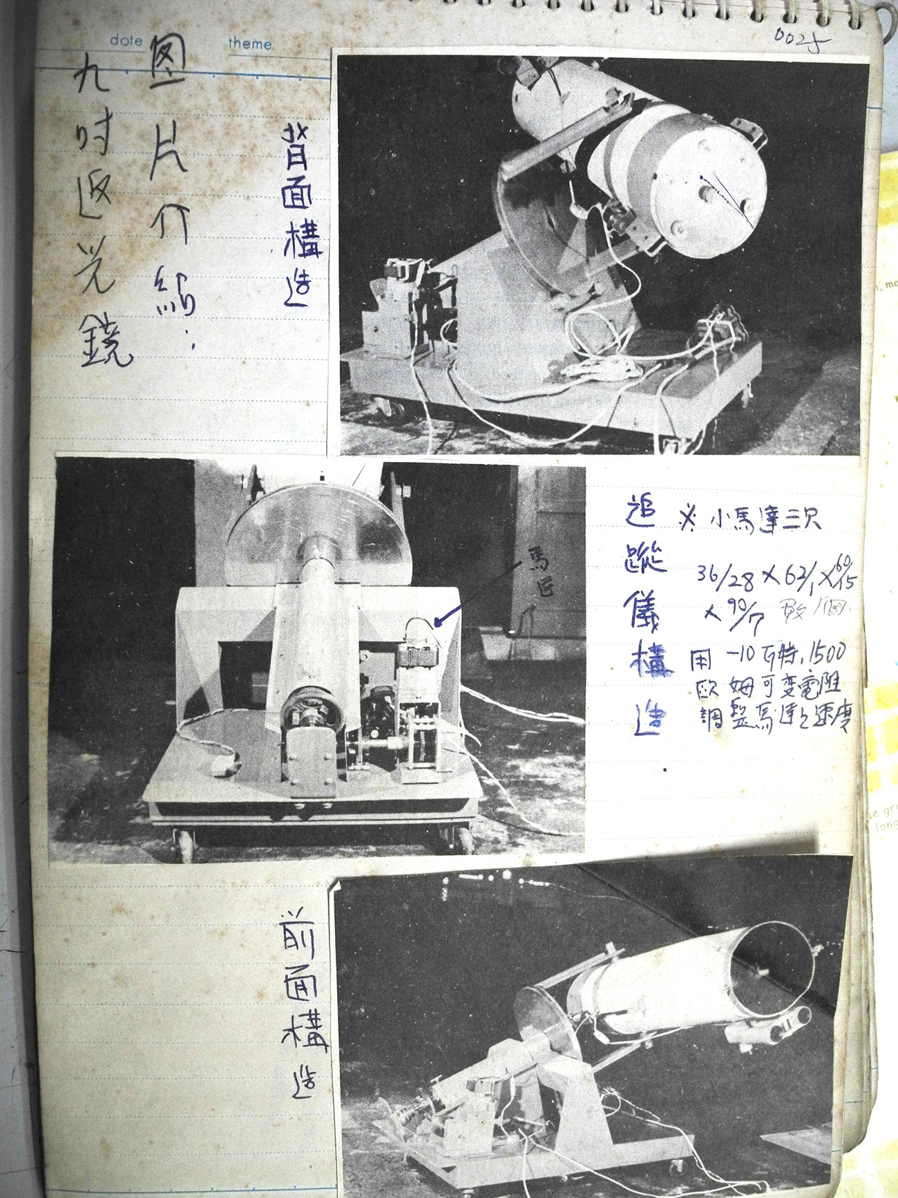 当初の5インチニュートンミラー(F7.5)では限界が生じ、9インチF/15.2カセグレンとF/5ニュートンフォーカスフォーク赤道儀を自作して観測を開始し、1970年に完成しました。