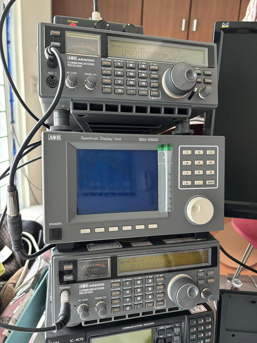 図 1: 上部受信機は FM 84.4MHz 150kHz 帯域幅です。 下部レシーバーはUSB(SSB) 84.799240MHz 3kHz帯域幅です。