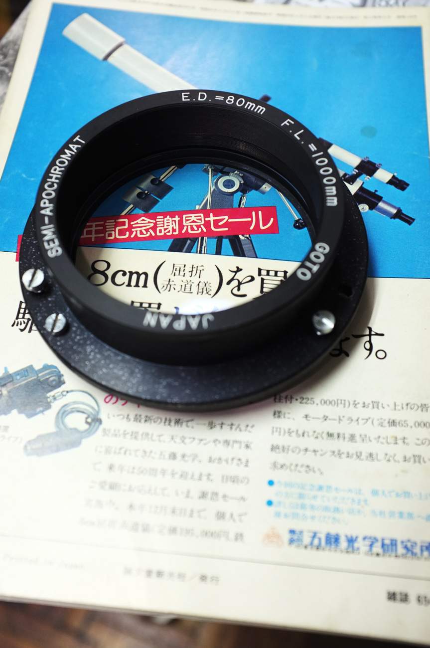 圖1: 五藤光学製 8cm semi-APO 対物レンズをクリーニング済み