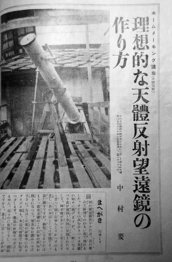 なかなか時間が取れずみなさんについていけてませんが、1926年と言えば科学画報に中村要氏が「理想歴な天體反射望遠鏡の作り方」を連載している時期。1925年にアマチュア変光星観測家の河西氏のために作った望遠鏡は、エリソン氏のミラーをイギリスから中村氏が手配して使っていました。