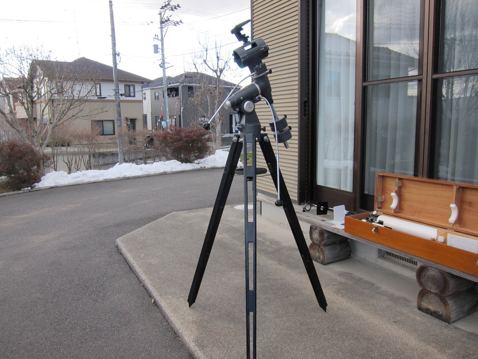 90S赤道儀に載せてみましたところなかなかカッコイイです。本当は鏡筒バンドも黒が良いのですがこれは仕方がないですね。