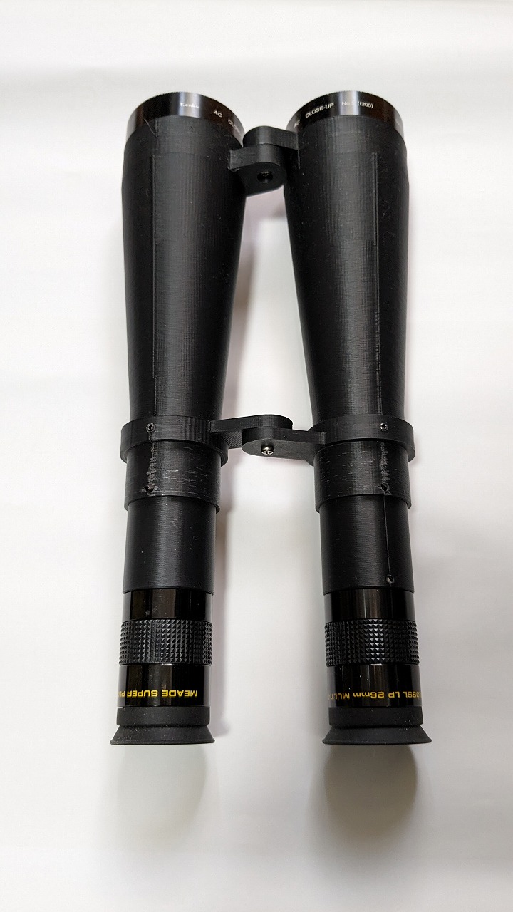 最初は対物レンズ側の接続のみにしたのですが柔すぎてだめだったので接眼側の接続リングを追加しました。