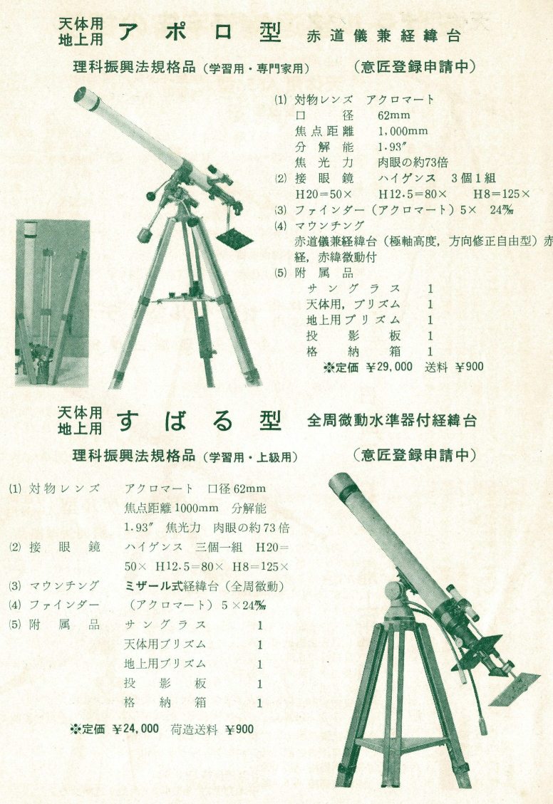 赤道儀が欲しくても買えなくて、泣く泣くすばる型を買った人と、アポロ型を手に入れた人ではその後の天文人生がどう変わったのか・・・・・それほどでもないか。
