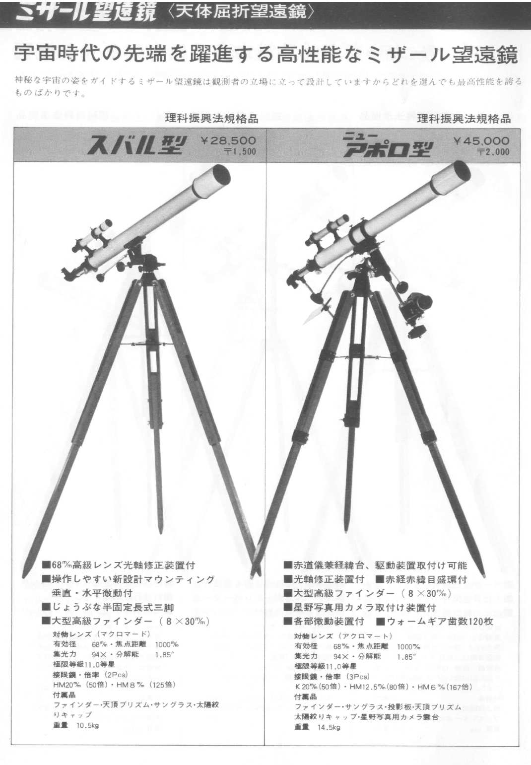ちなみにカタログに収められている天体望遠鏡は、安い方から
