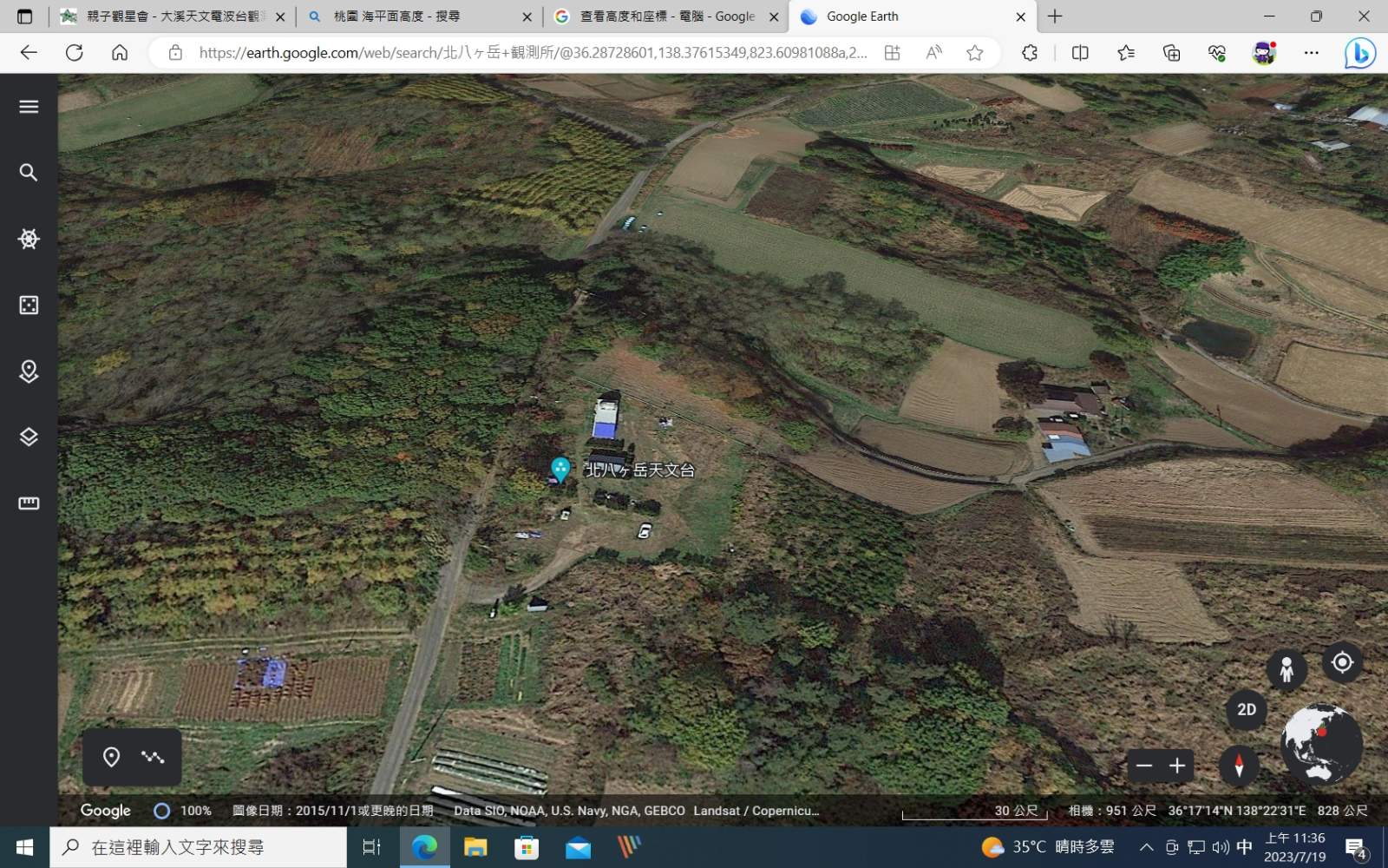 The last two pictures: the three-dimensional map locations of Taiwan’s Daxi Observatory and Japan’s Kita Yagatake Observatory