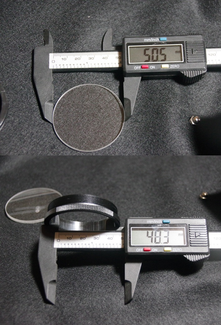 実は、以前以下のブログを拝見していて、少なくとも2010年頃までは直径48㎜、有効径43㎜のアクロマートレンズが入っていたようです(バルサム剥がれの記載有)が、私のもシングルレンズです(左の写真)。