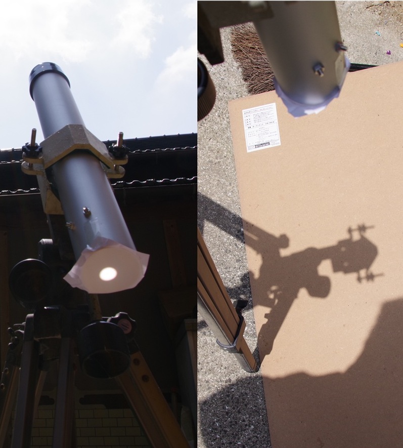 めちゃくちゃ光軸がずれているのかと、太陽を使って鏡筒の影が一番小さいところで、レンズを通った光がどこを通っているかを確認したら、ちゃんとだいたい真ん中を通っているのが分かりました。
