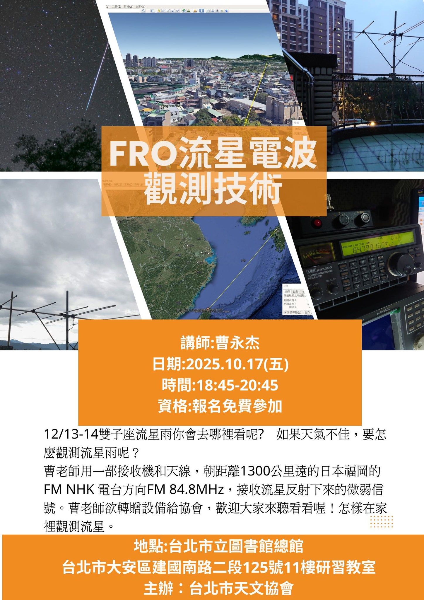 2025年10月17日「FRO流星電波観測技術」 - 曹永杰 (Young Chiech Tsao)