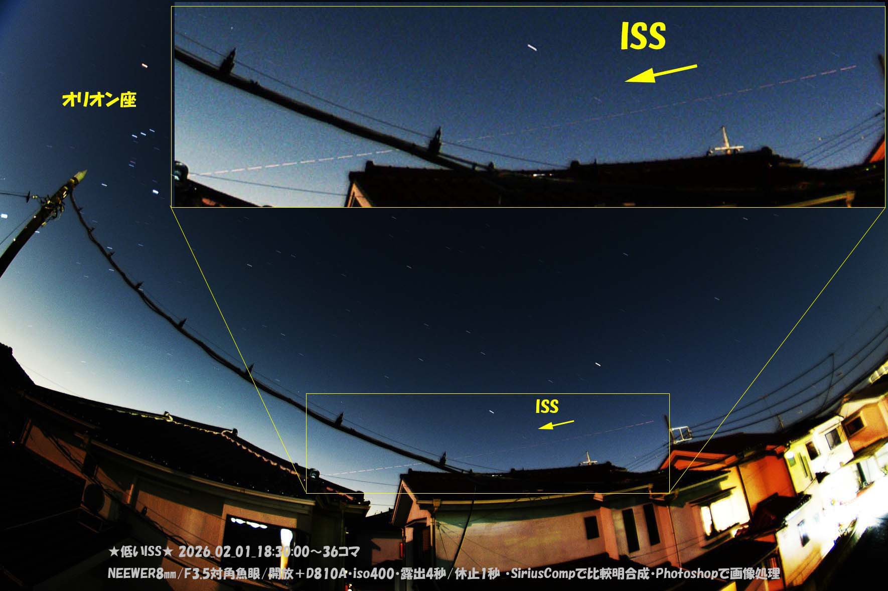 今夕のISSは長経路で見れました。(^0^v