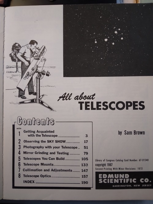 初版は1967年(昭和42年)で、アメリカの望遠鏡について分かりやすく解説した本です。今でもよく読み返しています。シンプルで古風なイラストは楽しく、私が幼少期に望遠鏡について学び始めた頃、この本のおかげで理解を深めることができました。