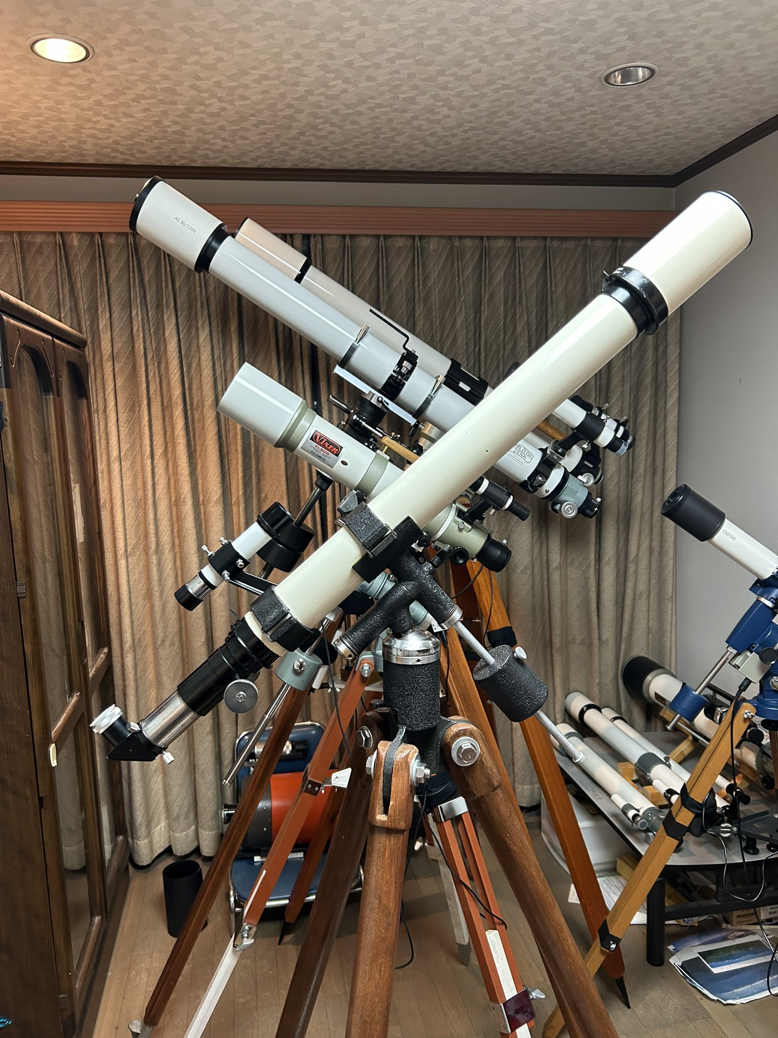 氏のタケノコの様に部屋中に望遠鏡が立っている写真があればもっと完璧なのですが・・・・。