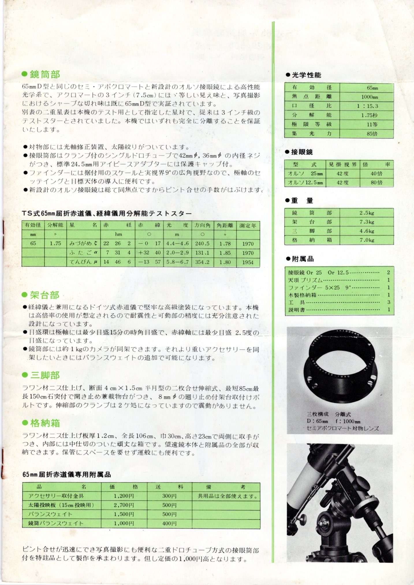 その当時何を見たかは、覚えていませんが、(トラペジウムぐらいか)重量があるので部屋から観測場所の庭に出すのに往生したことを覚えております。(窓枠に鏡筒をぶつけて小さな凹みを作ってしまいました。)