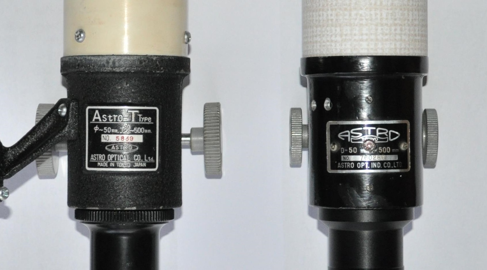画像は、アストロ光学の5cmとアストロ光学工業の5cmの銘板です。
