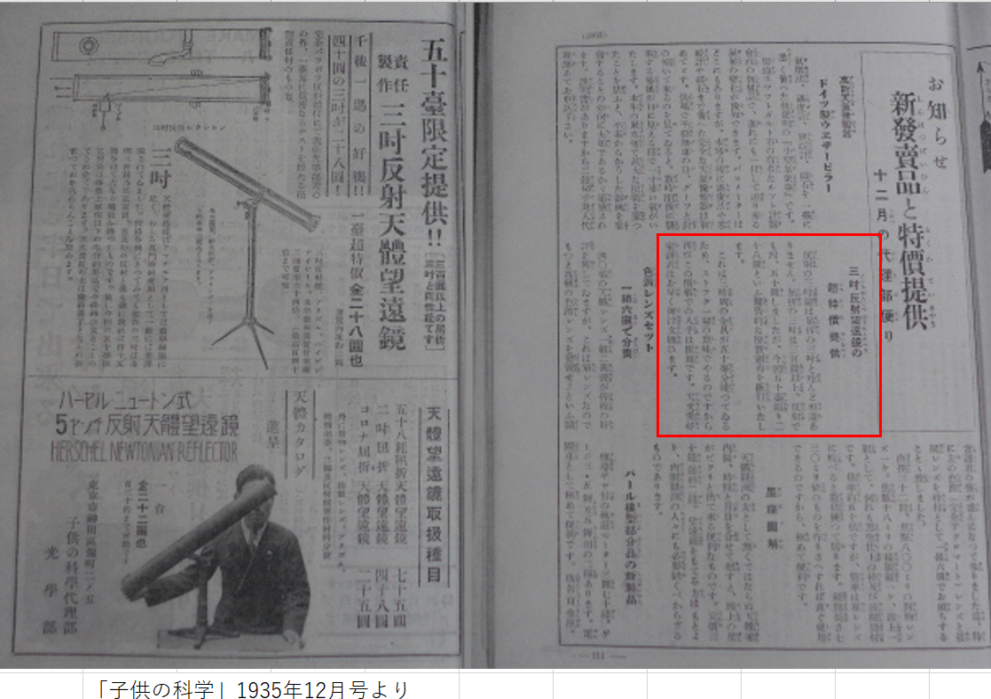 3吋反射望遠鏡(ハーシェルニュートン)の広告を見つけ、面白いことに気が付きました。