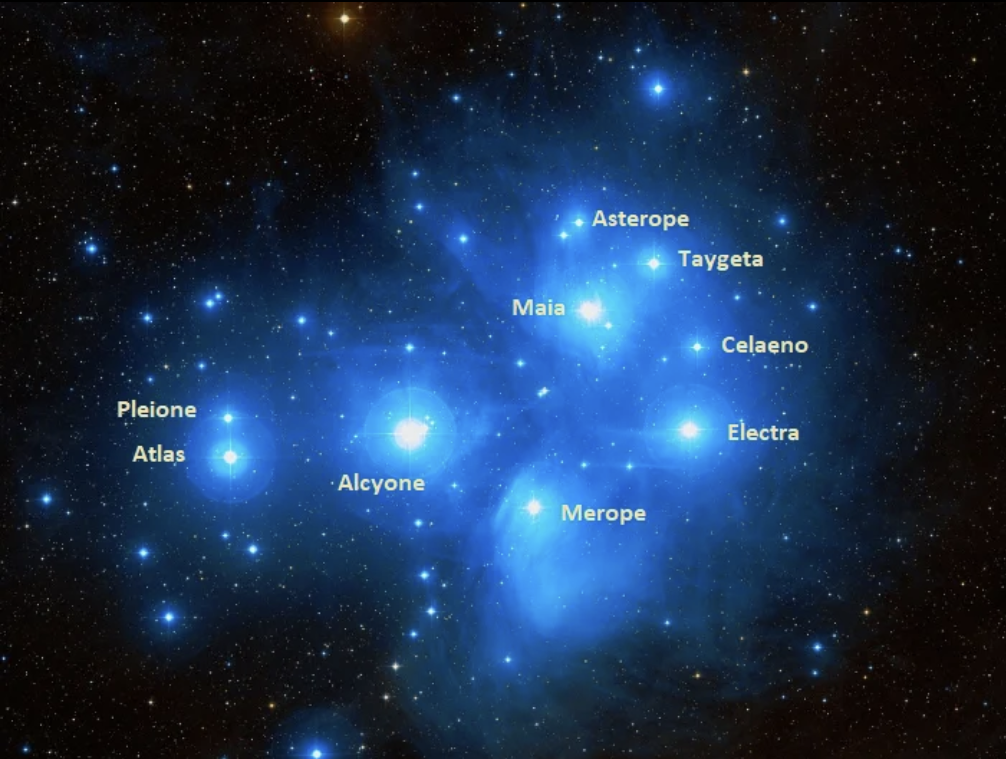 M45 image: https://en.wikipedia.org/wiki/Merope_(star)