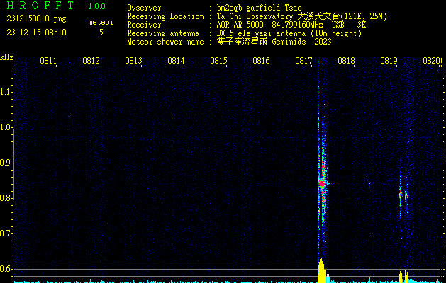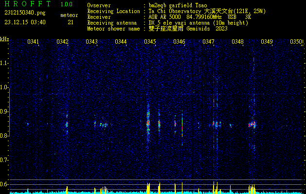 流星観測無線周波数:84.799160MHz USB・3K・FRO観測方式