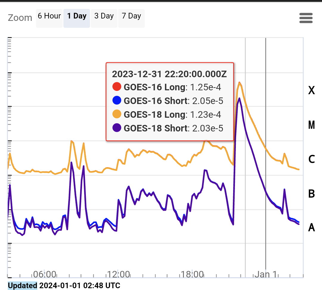 *. 12月31日午後に2回のC級フラッシュが観測されましたが、発生時間が午後4時から5時の間に発生したため、D層の電離における電子濃度が徐々に減少し、また地上波の伝導も増加し始めています。したがって、D 層イオン化の擾乱と不確実性が増加します! したがって、観測されるサージまたは減衰現象は非常に小さいため、低周波信号スペクトルの観測ウィンドウを拡大することが考慮されます。