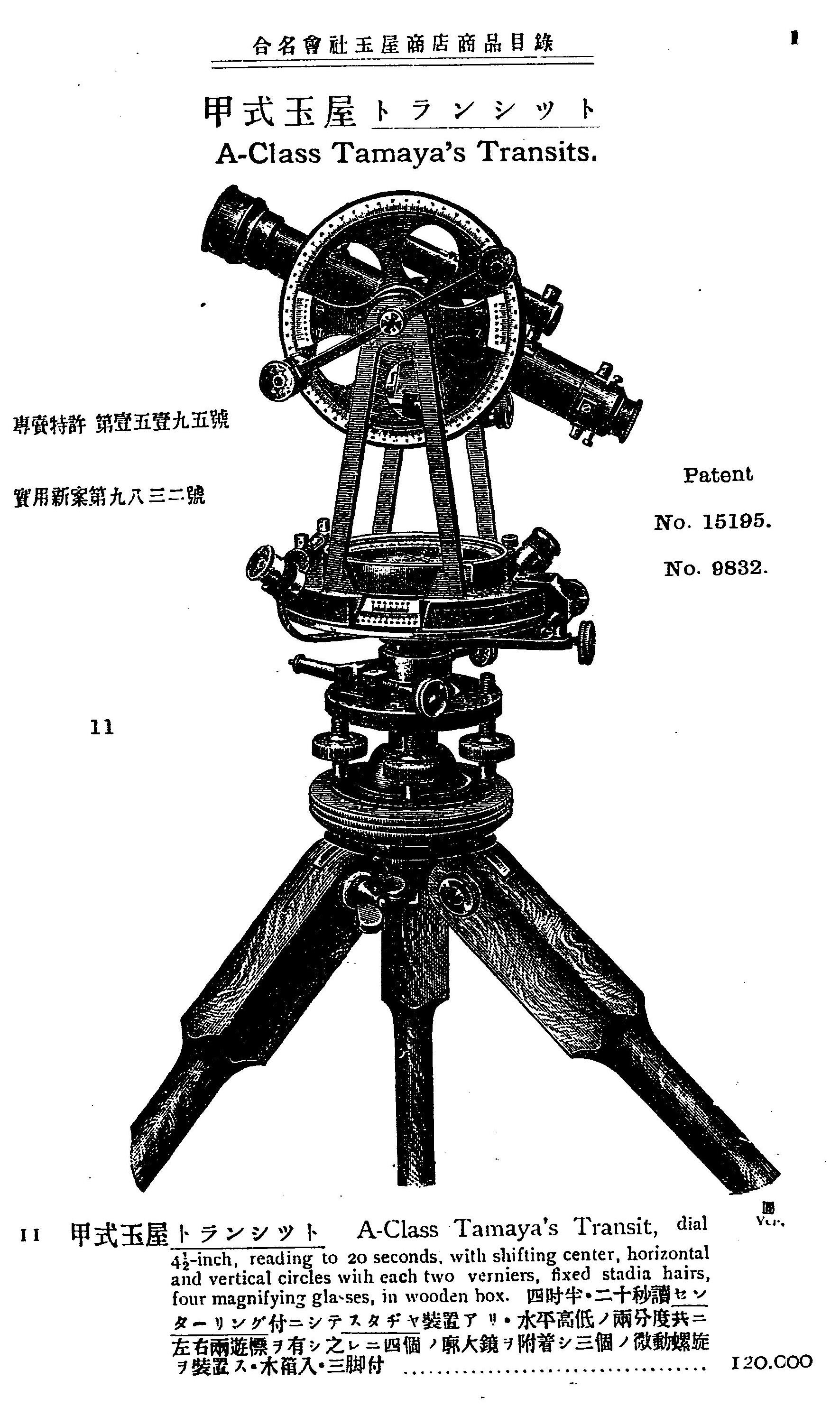 一番初めに国内で作られたアクロマートレンズの量産光学器械は、玉屋のトランシットではなかったかと思います。