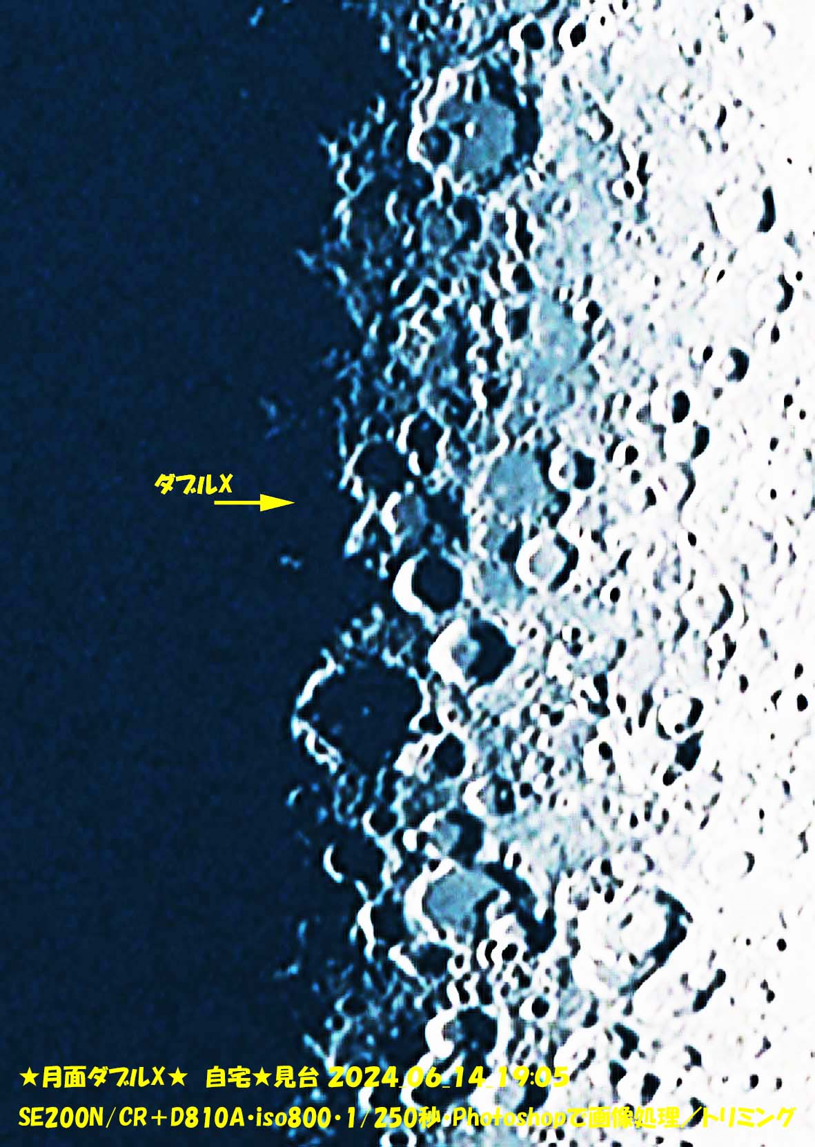 青色つきこさん、手持ちでこれほど鮮明な月面Ⅹは見たことないです。(^0^)