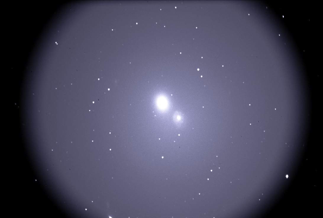M60 (太い方) と NGC 4647 (細い方) は約 2 分 5 秒離れており、可視光画像では 2 つの銀河が重なっています。 これら 2 つの銀河の画像には重力相互作用の証拠は示されていないため、基本的には 2 つの銀河は単に近くにあるように見えます。