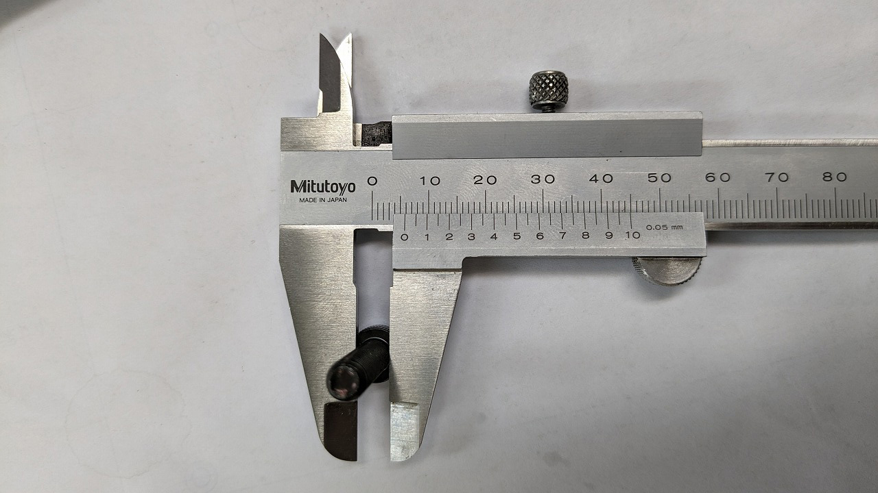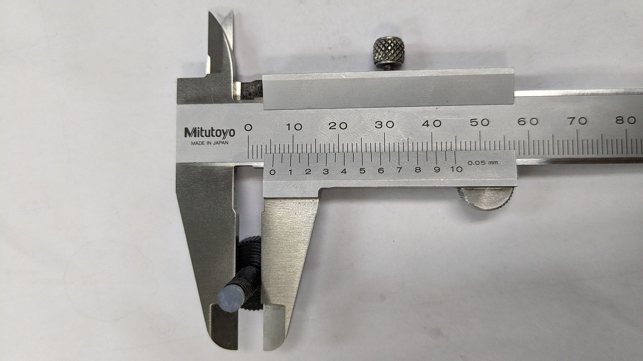 固定ねじを調べたところ先端の径が5.1mm、つまみ側が5.7mmと固定ねじが不良品のようです。