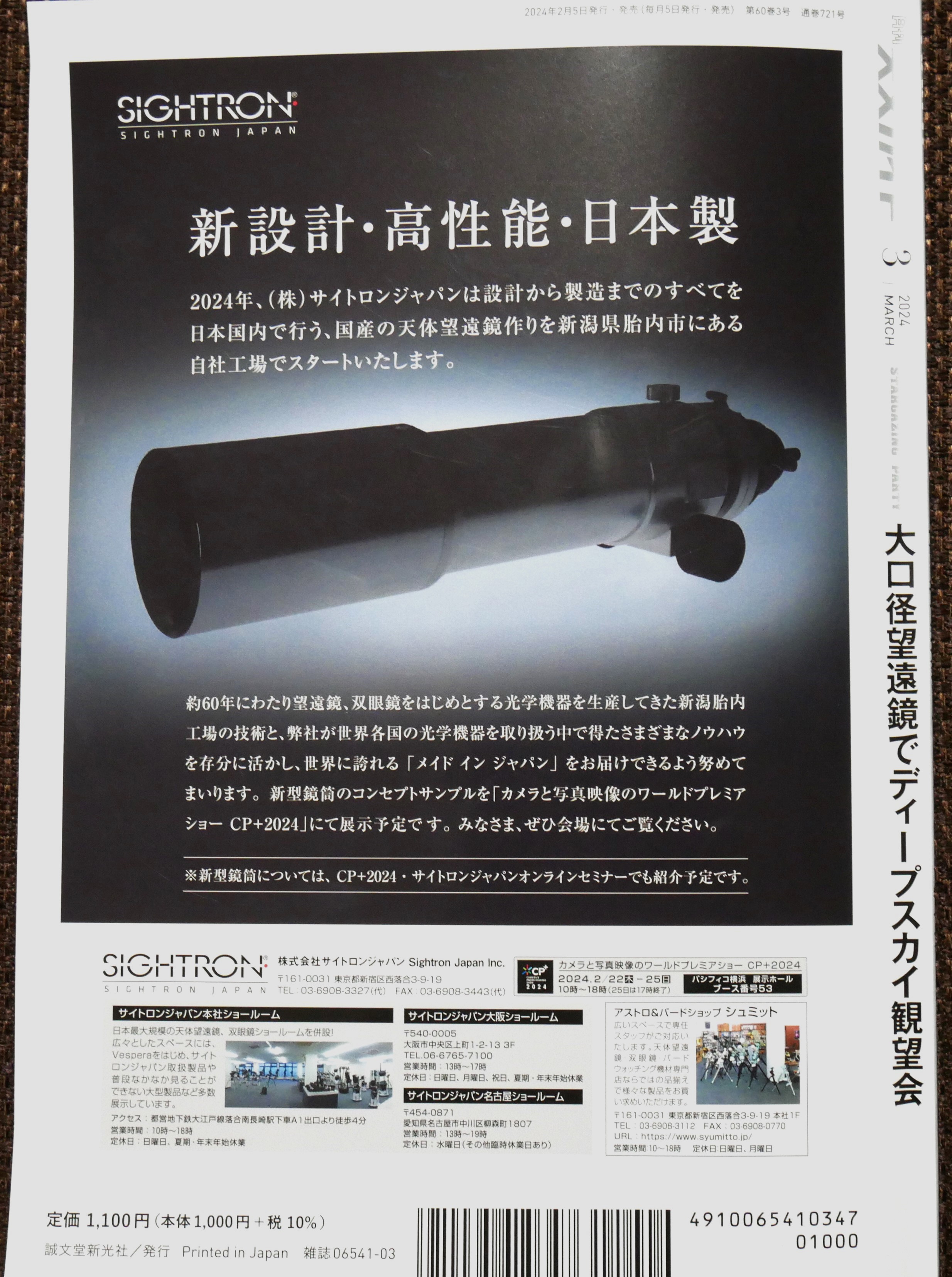天文ガイド2024年3月号の裏表紙です。