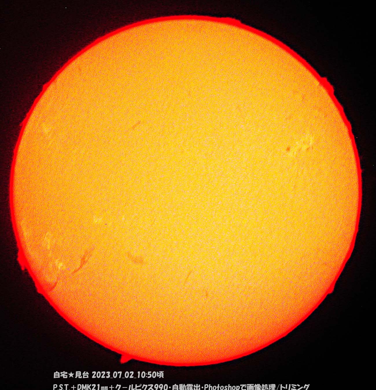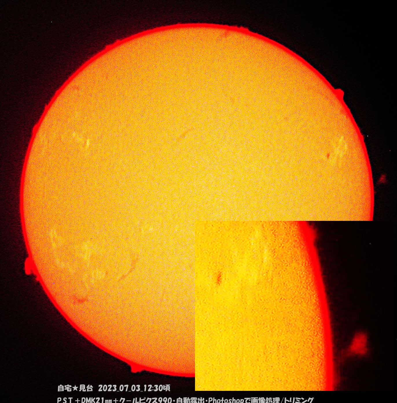 それと、昨日から梅雨なのに晴れており、Hα太陽も元気。