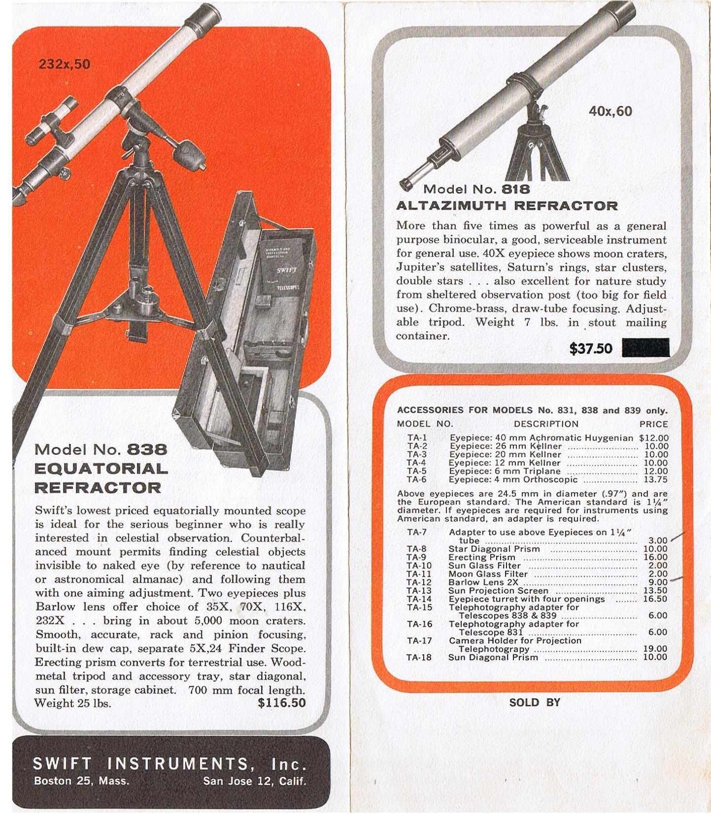 狭義の意味合いで、わたしが知りたいのは、Swiftの屈折式赤道儀 Model No.831,838,839の別売アイピース
