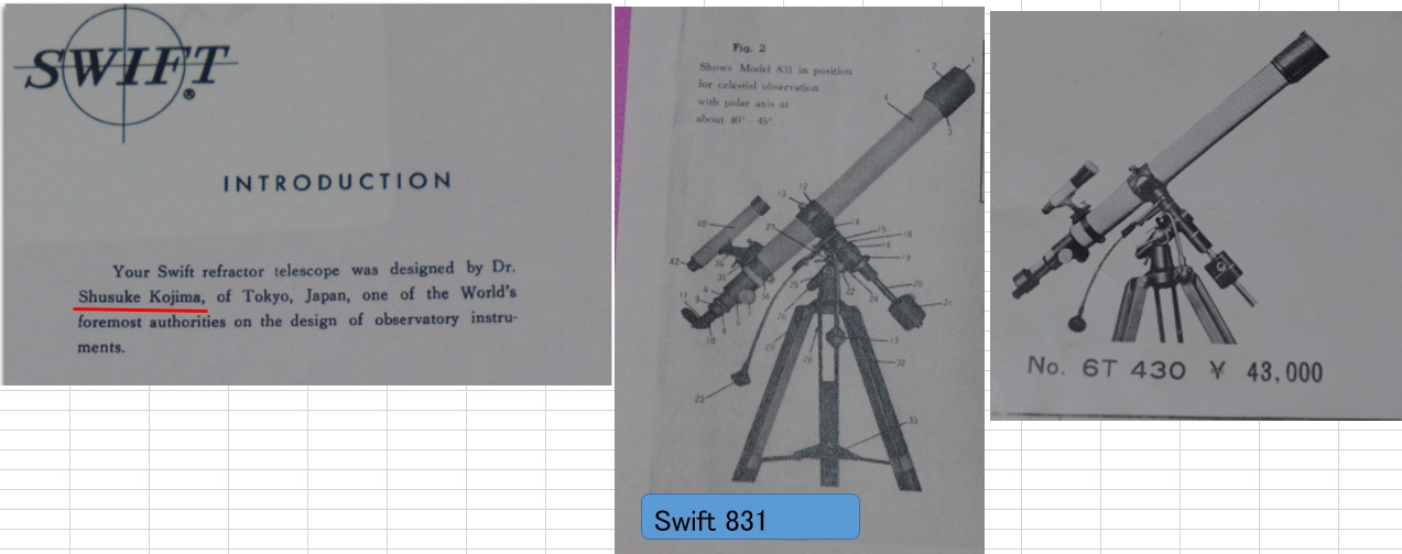 1.小島修介氏がSwiftに輸出していたが、あとを継いだのが取引先の高橋製作所で、それがきっかけで高橋製作所が望遠鏡業界に入った。