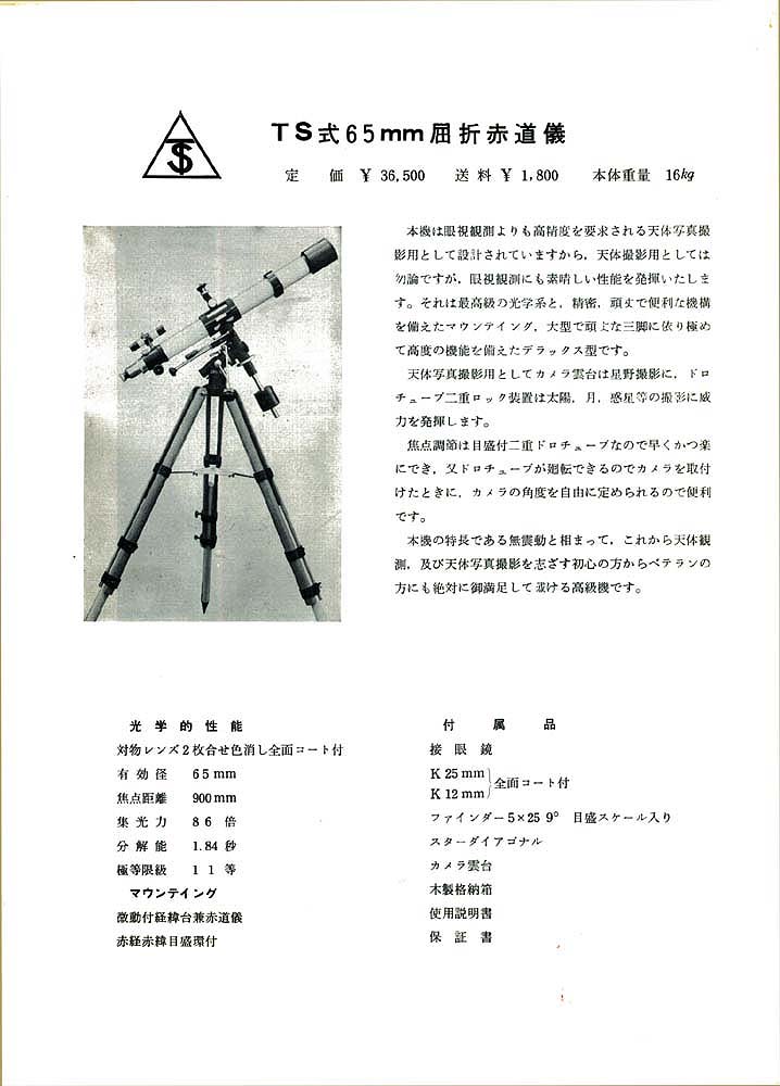 初めてのTS式65㎜屈折赤道儀(1967年)にも、(当然かもしれませんが)類似点があります。